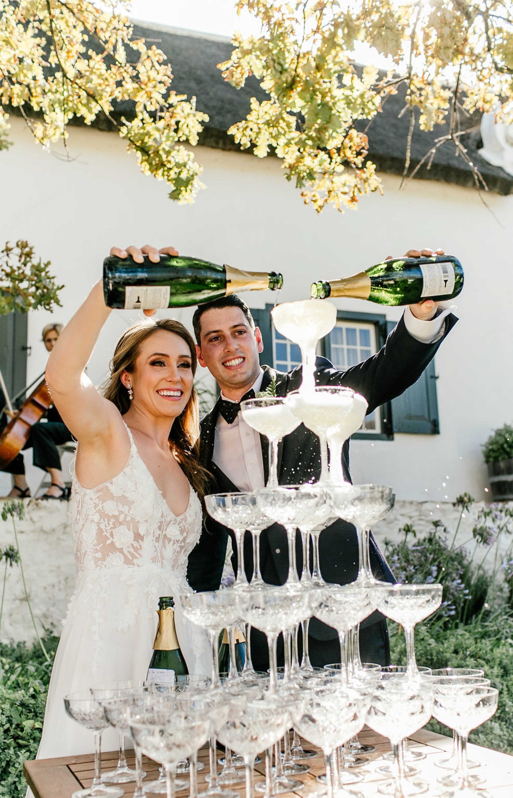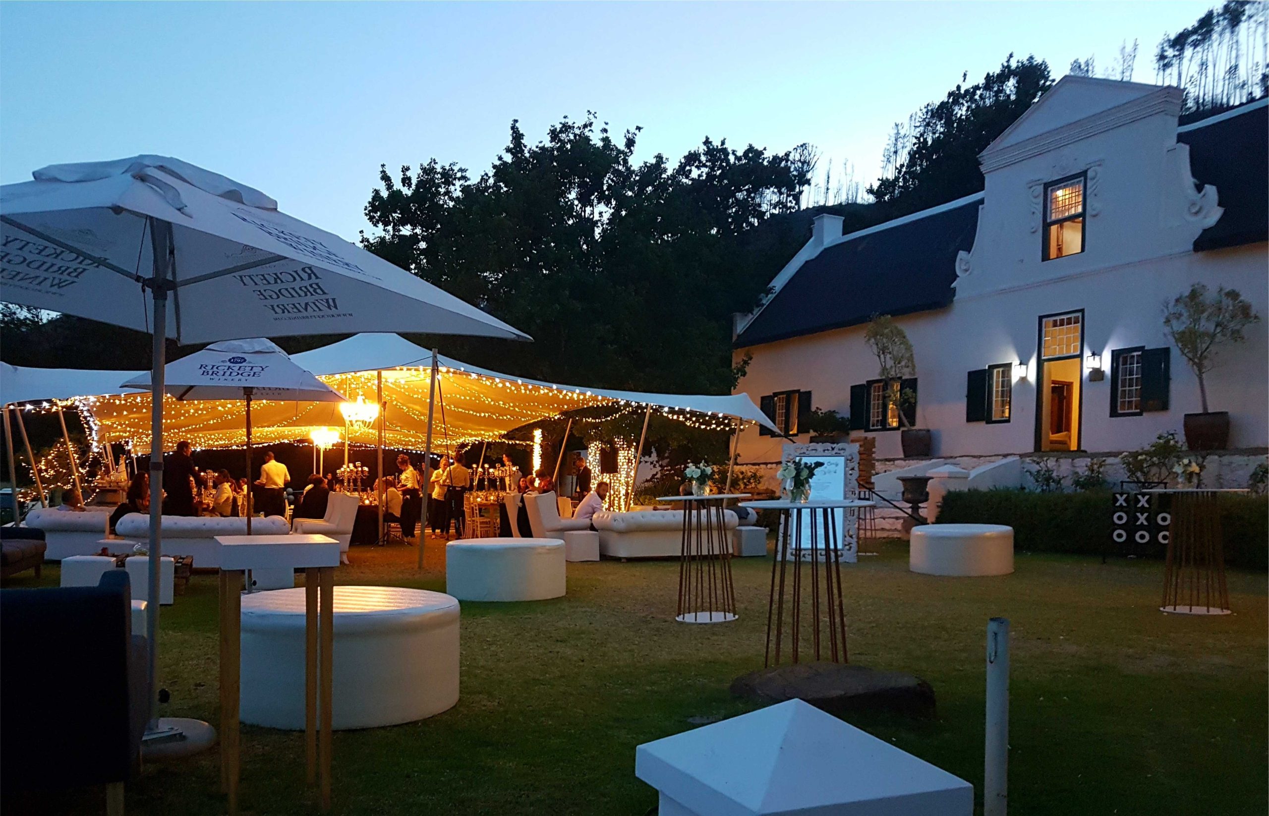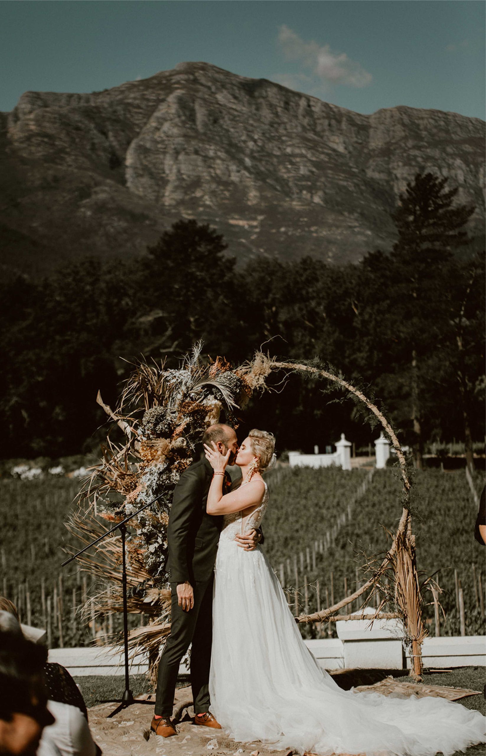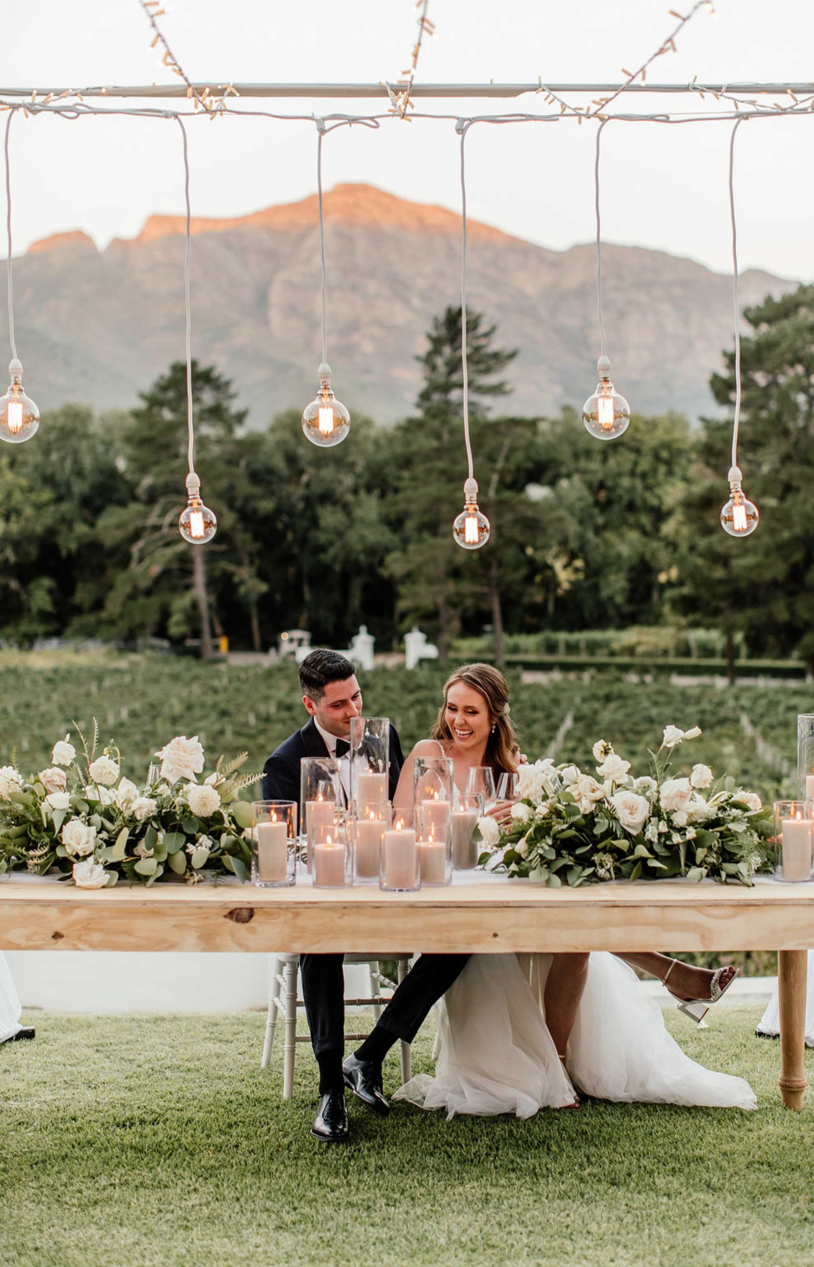 The idyllic setting of the wine estate provides stunning backdrops for your big day – and Rickety Bridge's all-inclusive package makes planning easy. The most popular option is a ceremony on the beautiful lawn in front of the 17th century Manor House, with the adjacent areas that can be transformed with seating pockets and lawn games, for the guests to enjoy during cocktail hour.