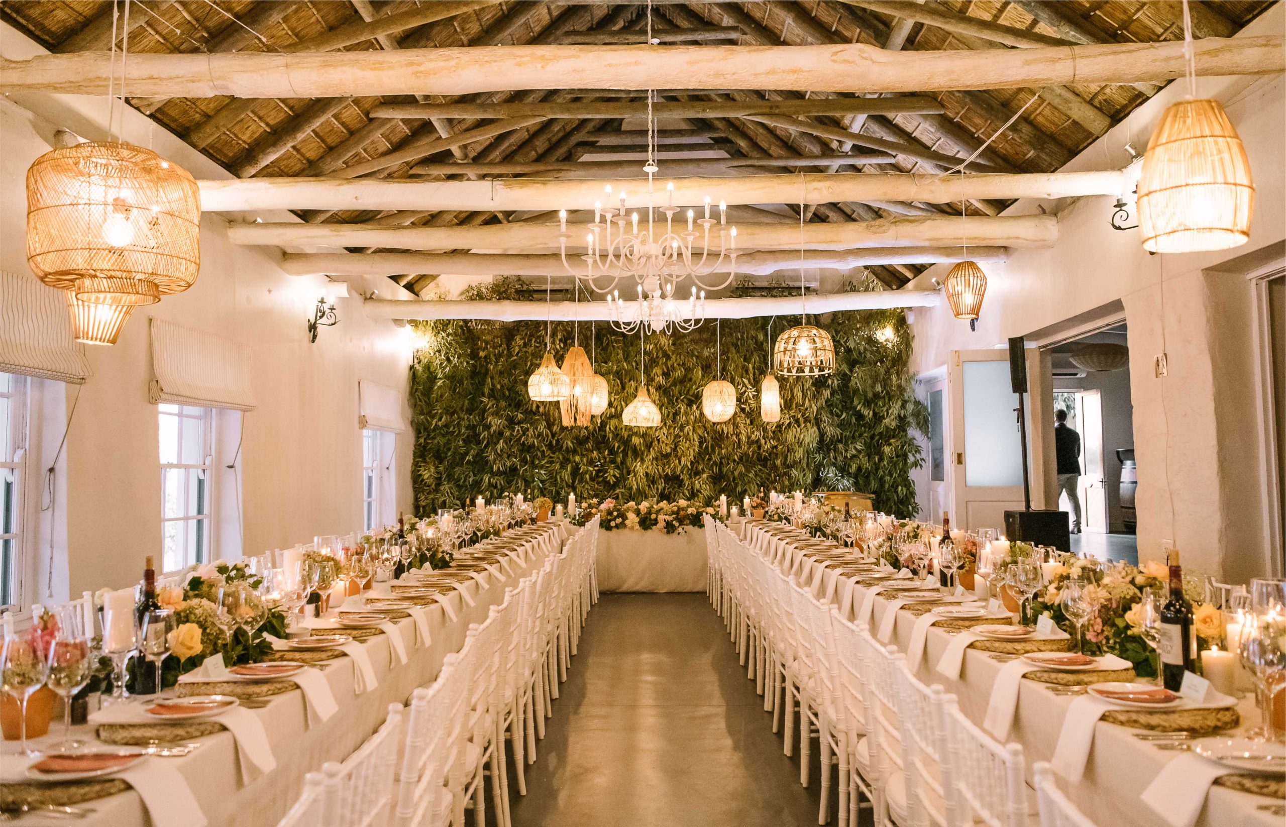 Rickety Bridge Winery offers accommodation in the Manor House adjacent to the venue, which boasts three luxurious 5-star deluxe suites, as well as on the property next door, where Basse Provence Manor and Country House is situated. Basse Provence Manor House offers another 3 luxurious rooms, with the country house adding another five rooms to accommodate wedding guests. On the same property, there is also a two-bedroomed cottage, ideal for families. Both properties have their own private swimming pool and all accommodation rates include breakfast.